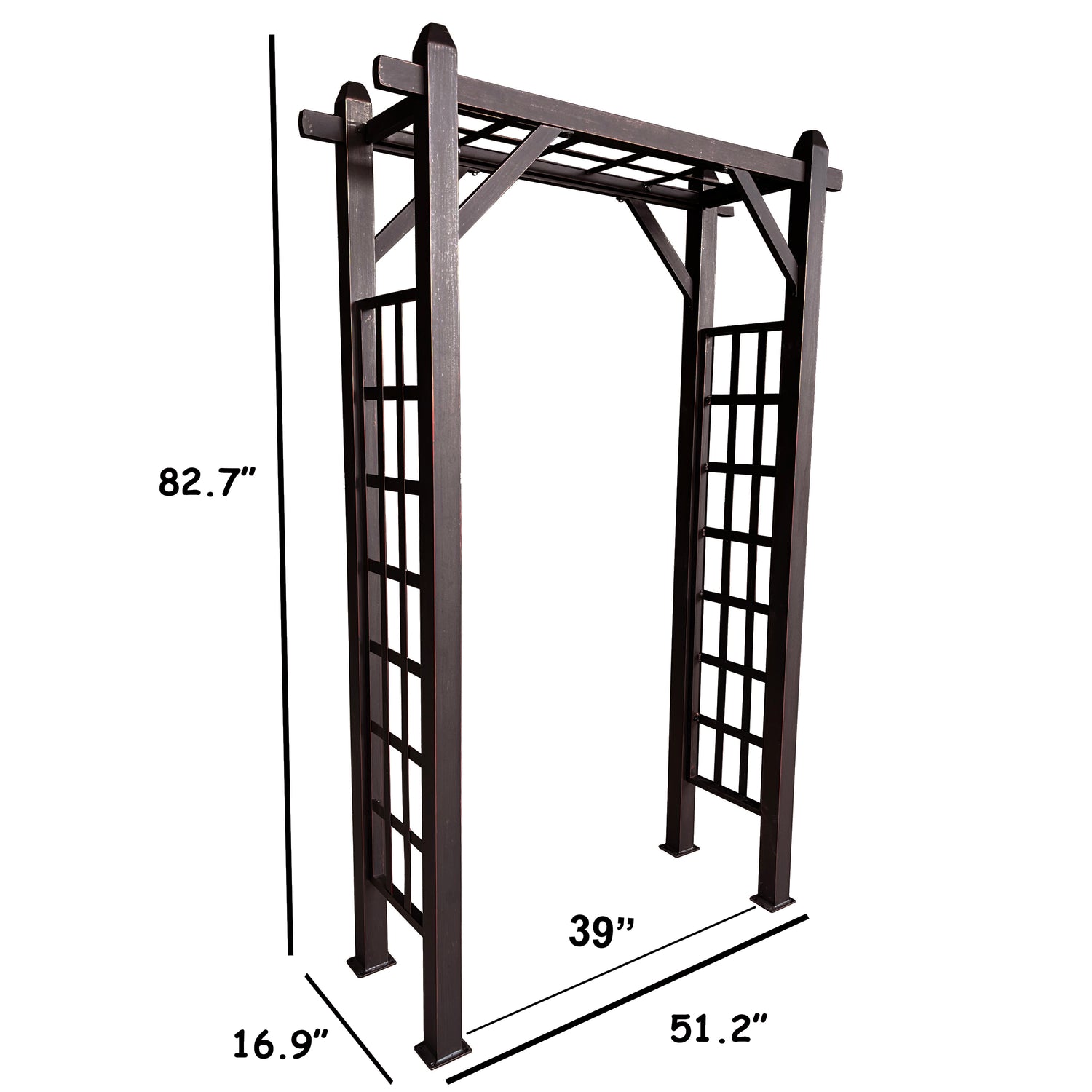 Add timeless elegance to your outdoor space with this beautifully crafted Aluminum Garden Arch. Designed to enhance garden paths, entryways, and landscapes, this durable rust-resistant aluminum arch provides the perfect support for climbing plants like roses, vines, and ivy. Available in Black, White, Bronze, and Brown, it complements any outdoor setting with its sleek and sophisticated design. Built for stability and long-lasting use, this arch comes with stainless steel hardware and ground stakes for secure installation. Whether used as a decorative accent or a functional trellis, this arch creates a stunning focal point that enhances the beauty of your garden year-round. Dimensions: 51.2” W x 16.9” D x 82.7” H | Weight: 39.7 lbs.