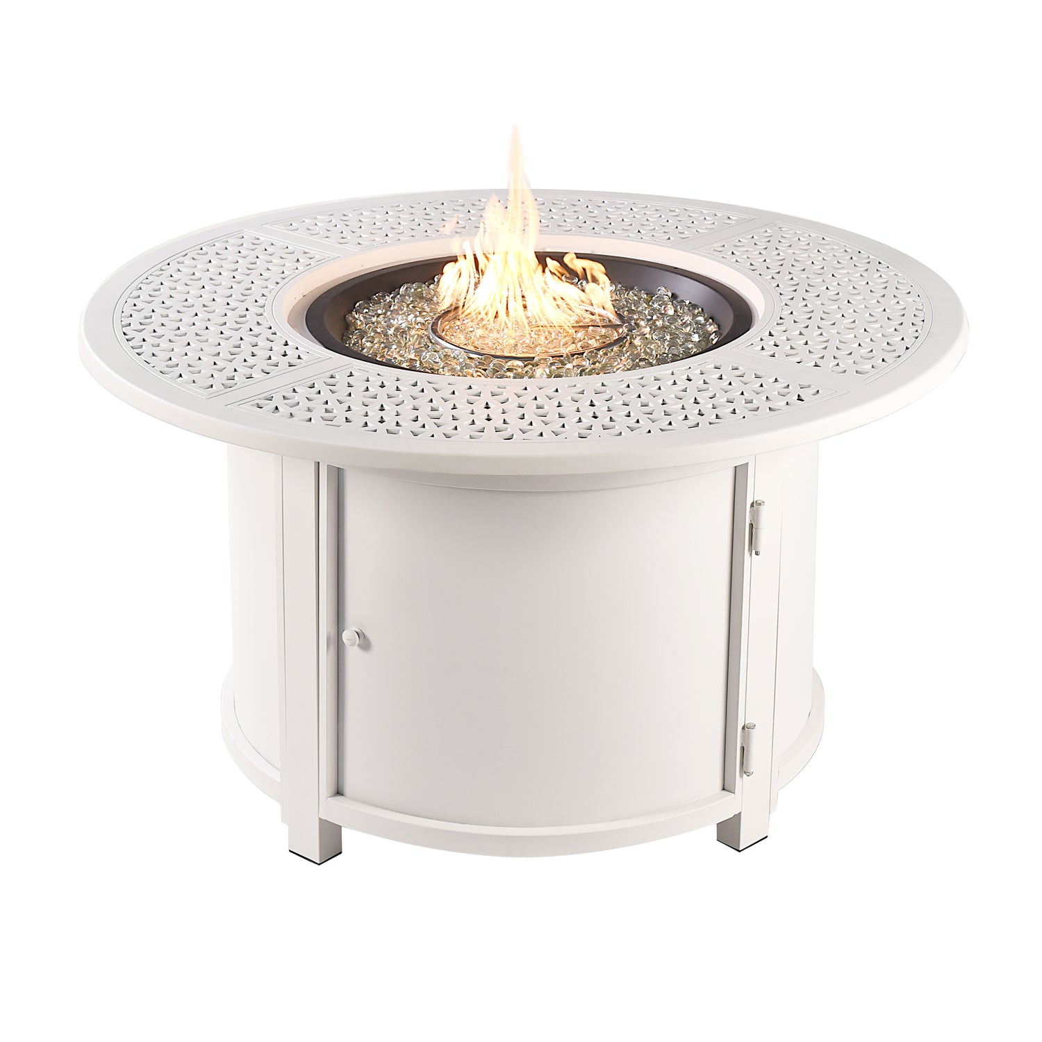 Aluminum 44-in Round Propane Fire Table with Beads, Covers and Lid - White is backordered and will ship as soon as it is back in stock.
