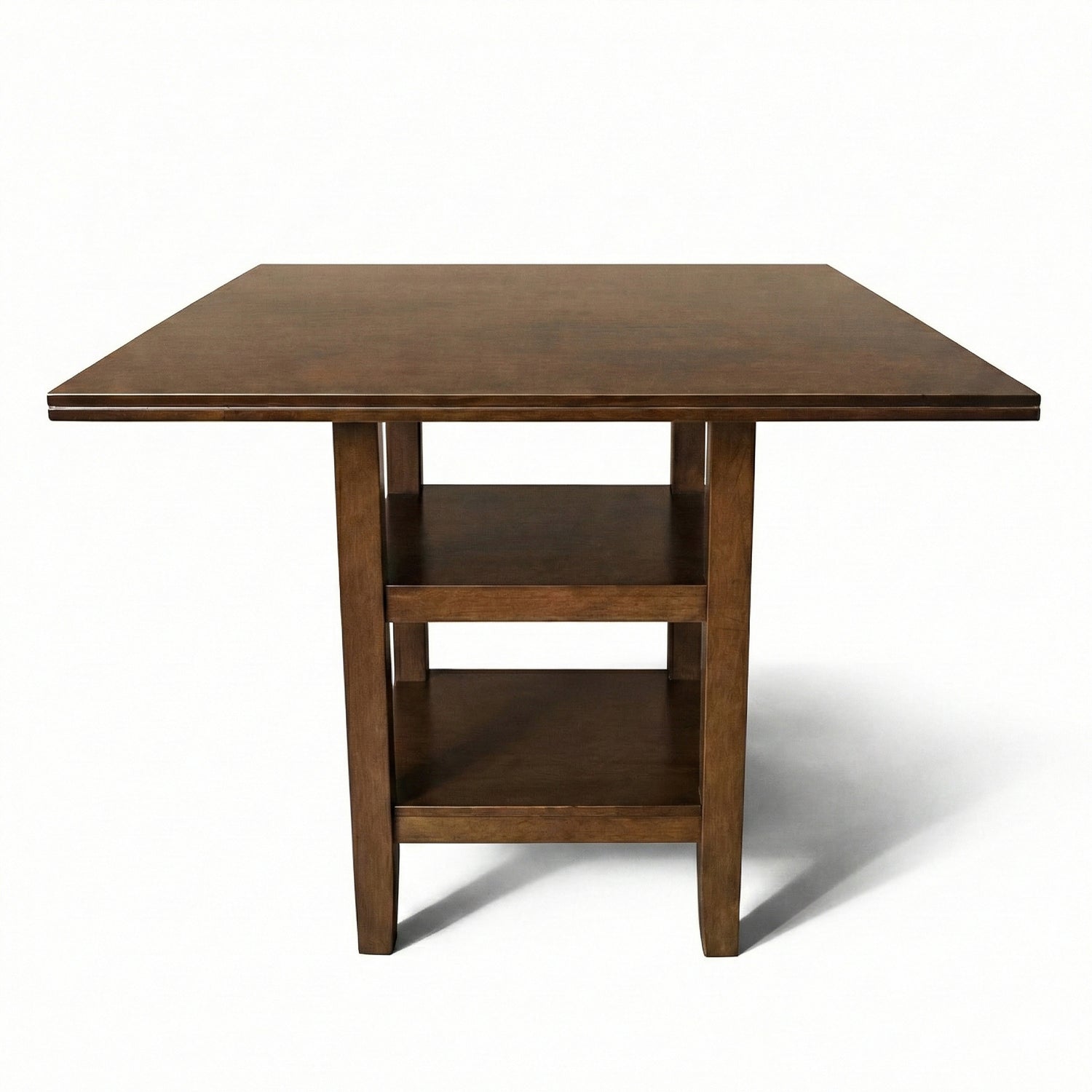 Elevate your dining experience with this stunning 41.3-inch square counter height table, expertly crafted from solid rubberwood in a sophisticated dirty oak finish. Perfect for modern kitchens, dining rooms, and open-concept living spaces, this versatile piece combines style with functionality. Built to last, the sturdy rubberwood construction delivers reliable durability for daily meals, entertaining, and everything in between. The sleek, contemporary design complements any décor while the smooth surface ensures effortless cleanup. Two integrated storage shelves provide convenient space for dinnerware, décor, or display—maximizing your dining area's utility. Pair this counter height table with upholstered or wooden bar stools to create a designer-inspired dining setup that impresses. The clean-lined silhouette works beautifully in compact apartments, family kitchens, and casual entertaining spaces. Assembly is straightforward with all hardware and instructions included. Dimensions: 41.3" L x 41.3" W x 36" H | Weight: 81.13 lb Transform your dining space into a modern gathering spot that balances aesthetics with everyday practicality.