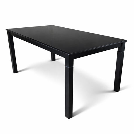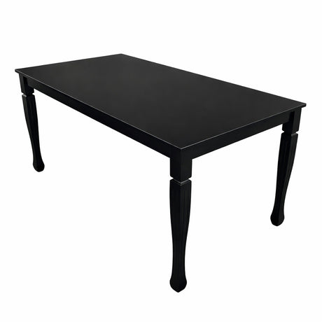 Traditional 63 Inch Rectangular Dining Table, Black Finish Solid Rubberwood
